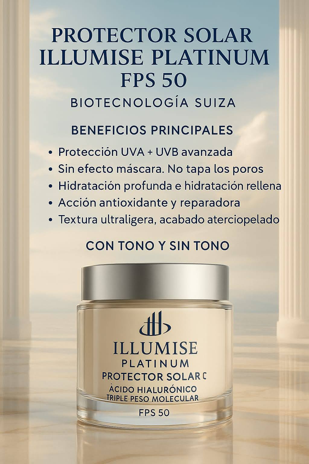 Una fórmula biotecnológica de nueva generación diseñada para proteger, hidratar y optimizar la función cutánea bajo exposición solar. Este fotoprotector actúa como un “escudo inteligente”: combina filtros avanzados de amplio espectro con ácido hialurónico de alta pureza para preservar la integridad estructural de la piel mientras mantiene una textura sensorial tipo crema, sin residuos blancos y con acabado sedoso imperceptible. Su tecnología se adapta a todo tipo de piel, incluso sensibles, ofreciendo una defensa continua contra radiación UVA/UVB, fotoenvejecimiento, deshidratación y estrés oxidativo.