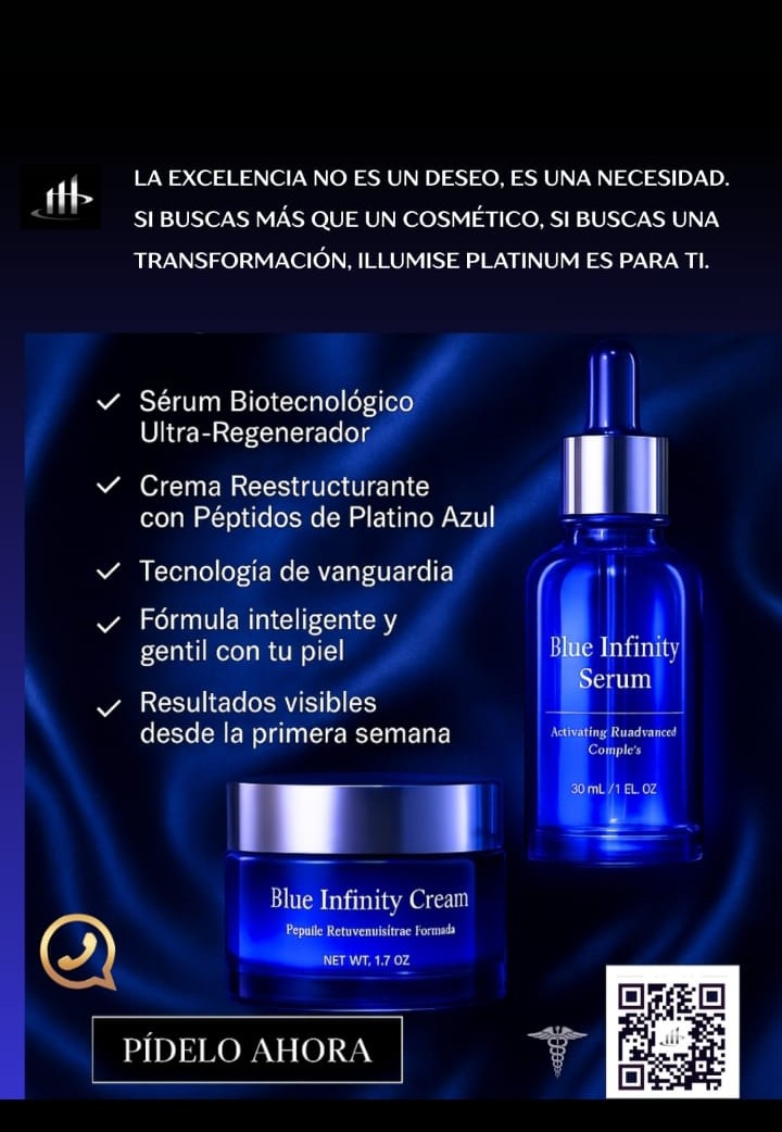 El Dúo Blue Infinity fue concebido como un sistema de regeneración profunda y longevidad cutánea, orientado a pieles que han perdido vitalidad, coherencia celular y capacidad de autorregulación con el paso del tiempo.
